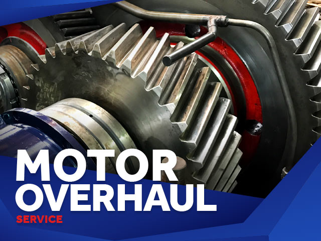 การยกเครื่องมอเตอร์ไฟฟ้ามาตรฐานประกอบด้วยการตรวจสอบและวินิจฉัยอุปกรณ์เบื้องต้น การเปลี่ยนตลับลูกปืน การทดสอบการทำงาน และการรายงาน